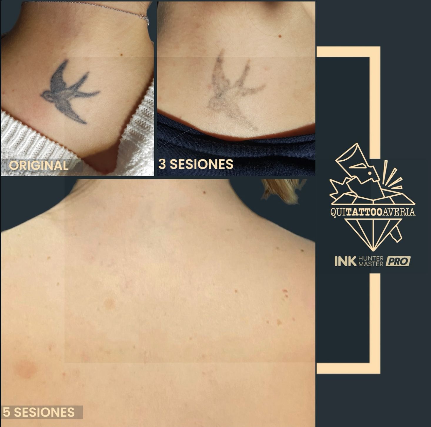 Estamos especializados en la eliminación total o parcial de tatuajes. Usando siempre las últimas tecnologías como INK HUNTER MASTER PRO y PICOSURE podemos garantizar resultados óptimos, sin cicatrices y con el menor número de sesiones, con una curación rápida y cómoda.