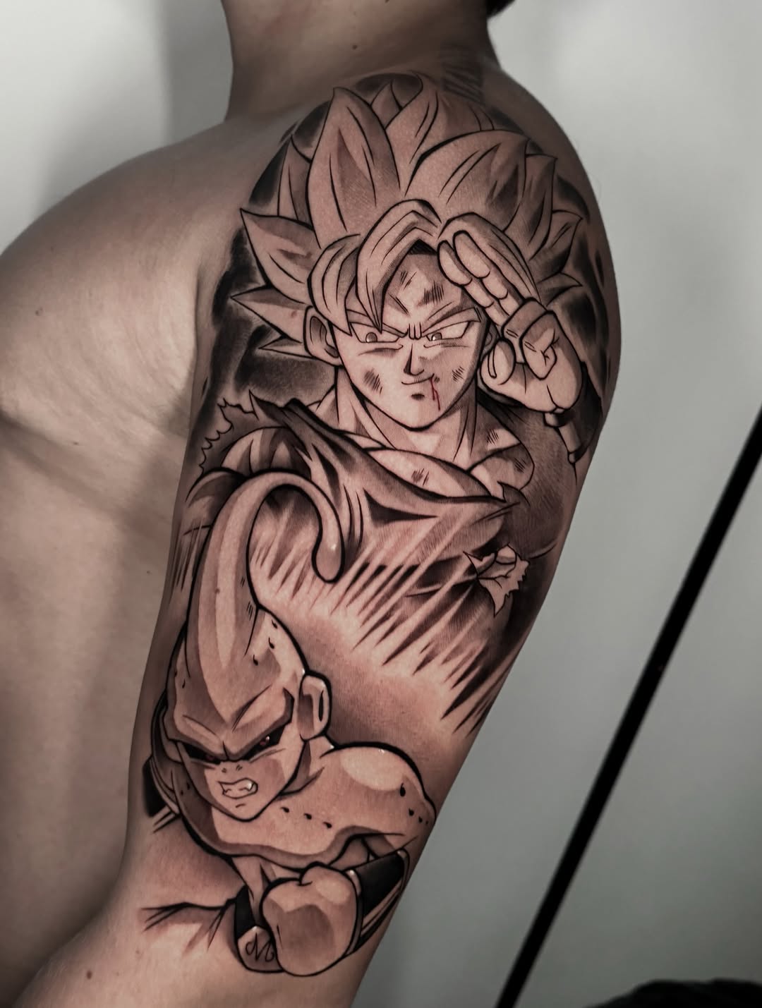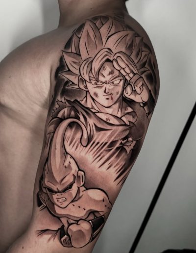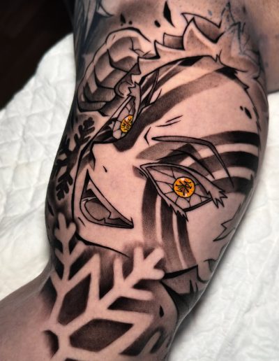 Especializado en tatuaje anime, Satoru lleva su trabajo a un nivel muy técnico, combinando black & grey con toques de color, composición dinámica y una lectura limpia del diseño en piel. Su pasión por este estilo y su proyección internacional lo han llevado a tatuar dentro y fuera de España.
